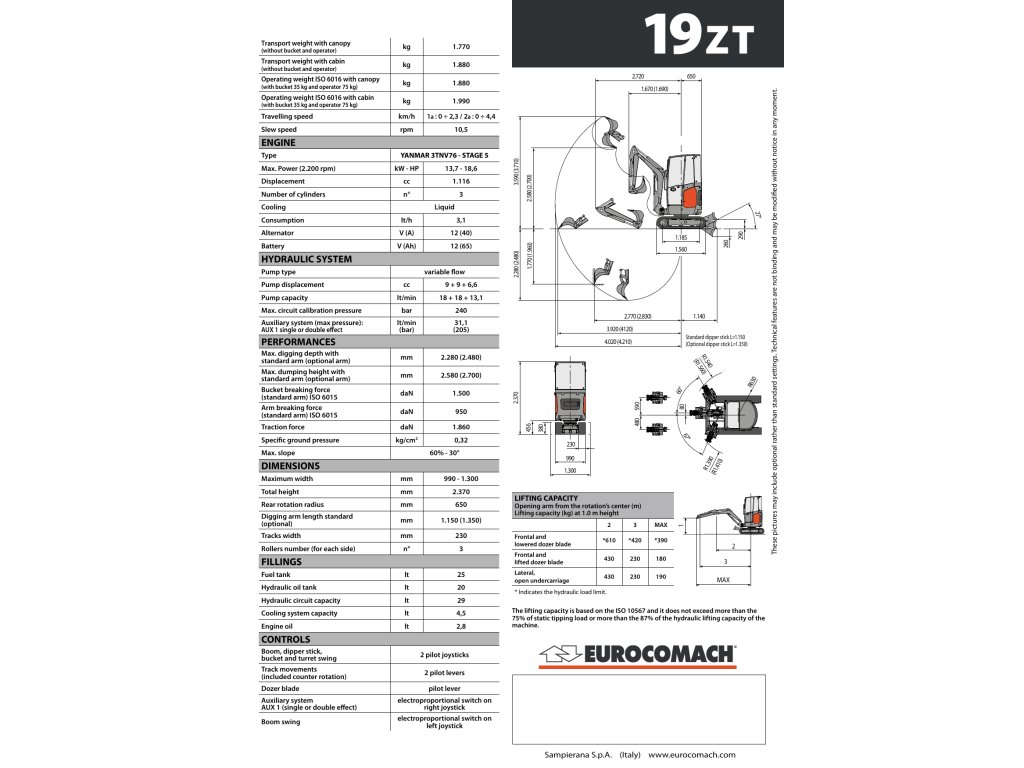 Model 19ZT je vybaven mimořádně kompaktními rozměry a spalovacím motorem o výkonu 18 koní, takže je výkonným spojencem v jakémkoli pracovním prostředí.